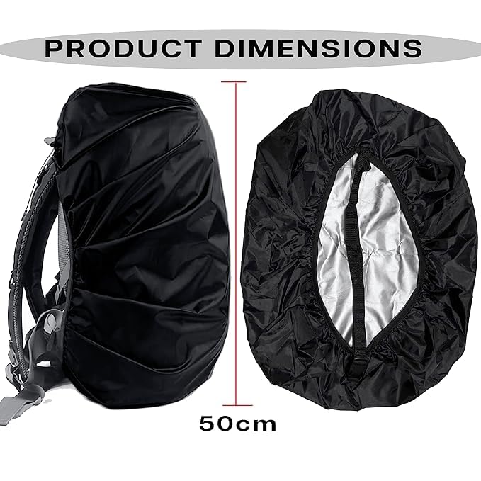 Size- 30 to 35 litres . The durable Backpack rain cover is made of heavy-duty polyester fabric that is waterproof, dustproof, and tear-resistant.