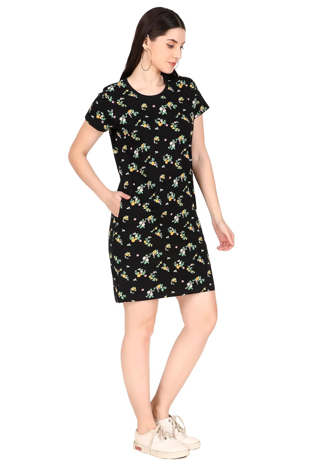 Stories.Label Women Cotton Long T-Shirt Dress in Knee Length with Side Pockets Include Plus Sizes (Size S -5XL)