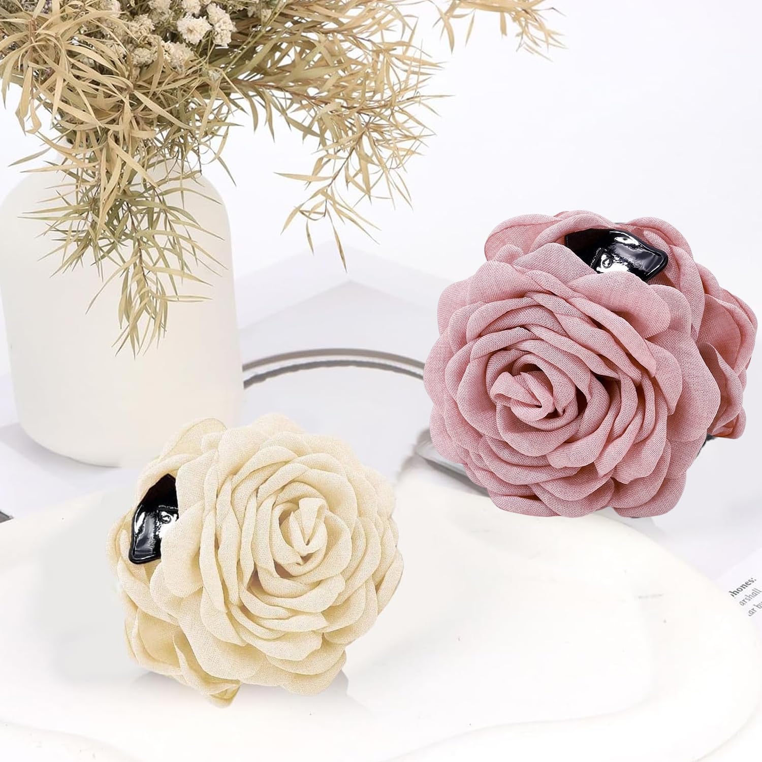 【 Elegant Flower Design 】: These beautiful flower clips for women hair feature a stunning blooming rose design in soft, feminine colors, making them the perfect accessory to elevate any hairstyle.