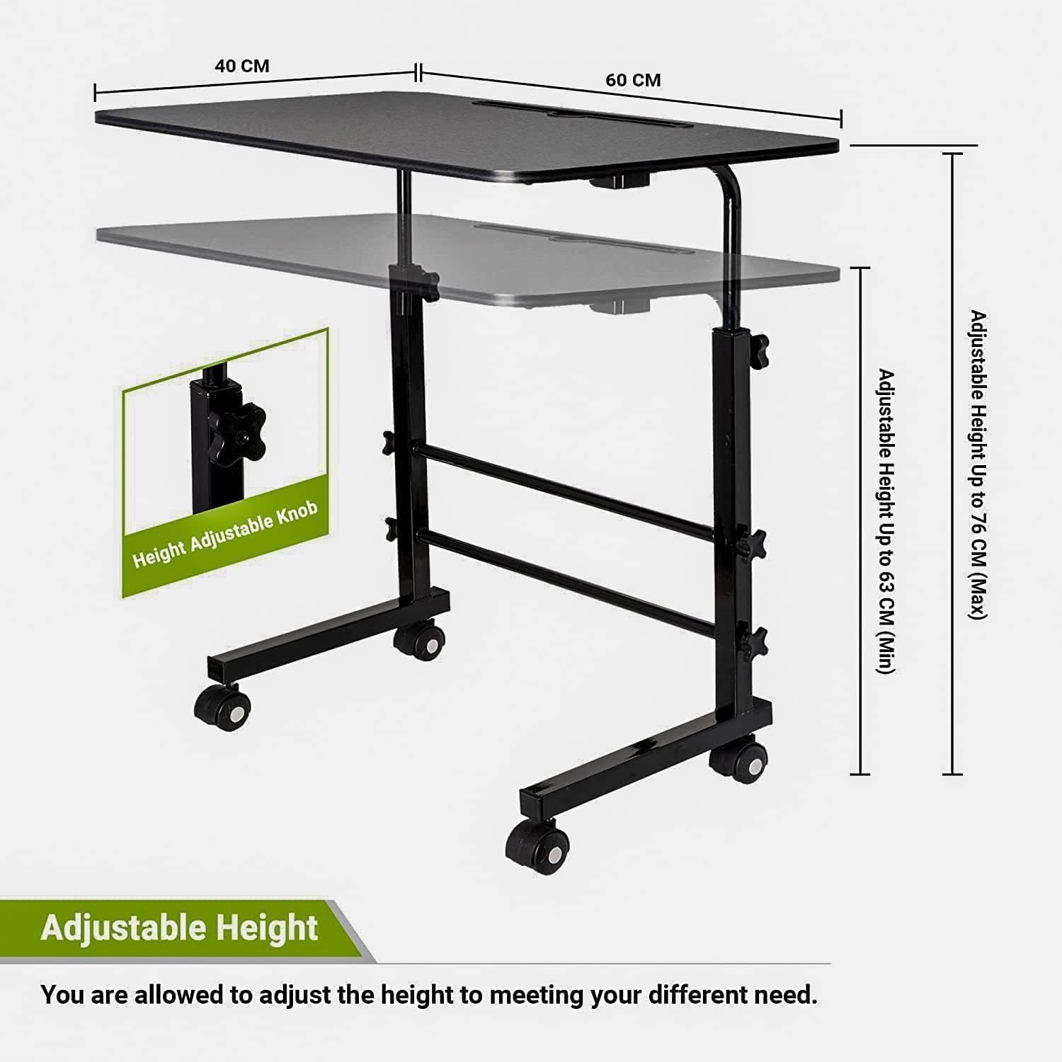 [Adjustable Height & Easy Move ]- This kind of mobile laptop desk can be adjusted to your ideal position from 24″ to 30″. And the rolling desk which has 4 smooth wheels can also make the desk move wherever you want. The adjustable computer table protects you from Headache, and neck pain.