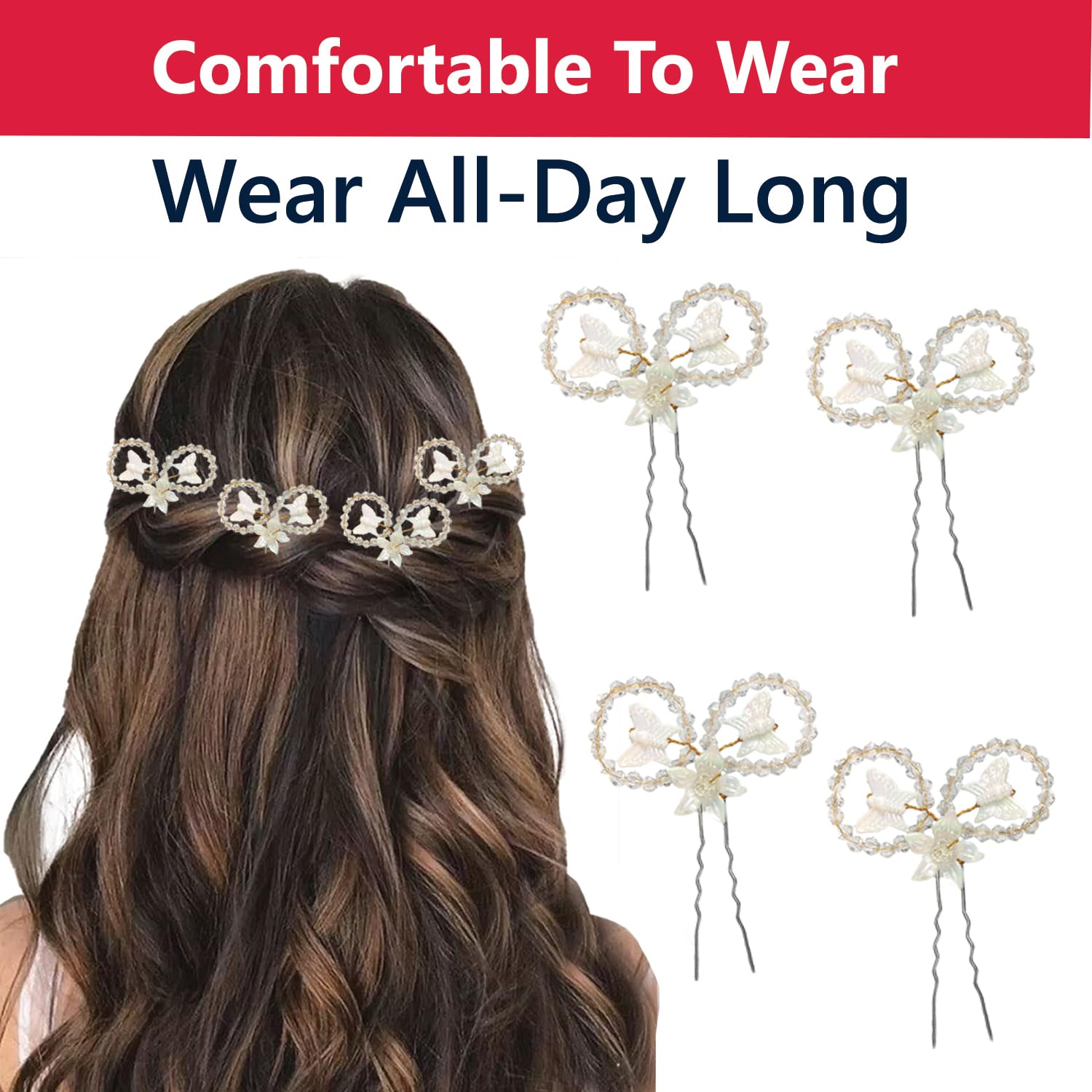 TEMPERIA (4 pcs) Crystal U Pin Hair Accessories For Women & Girls – Artificial Flowers Bun Juda Bridal Pins for Hairstyle & Decoration – Pins & Clips for Style of Bride – White (MN02)