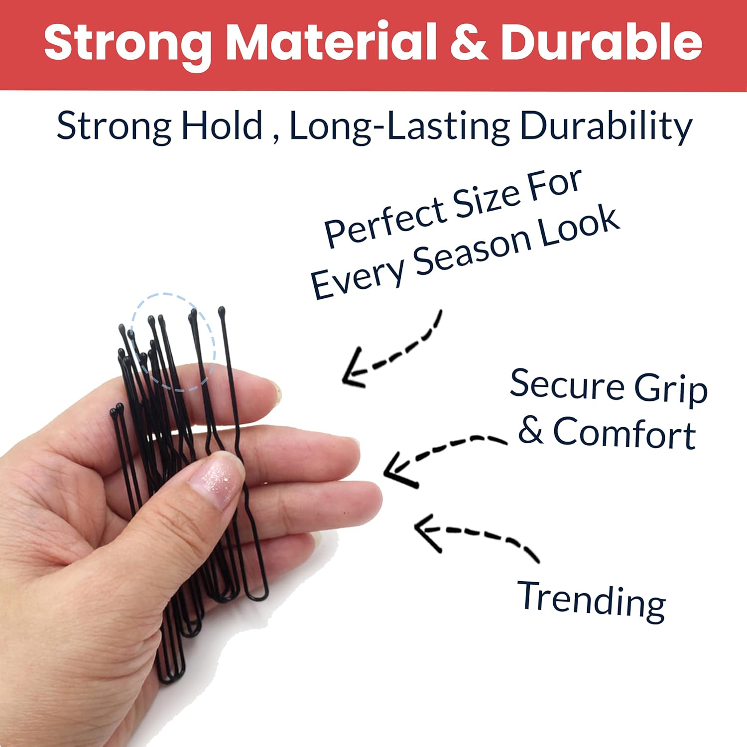 ✅ Pain-Free Hair Pins:- The hair U-Shaped pins are made with a curved and flat design to provide solid hold. Perfect curved U-Shaped pins for thick hair because it can hold a much larger section. All the hair clips have thick ball tips coating on the end for additional comfort. These black U-Shaped pins are comfortable to wear and easy to remove without pulling and snagging your hair.