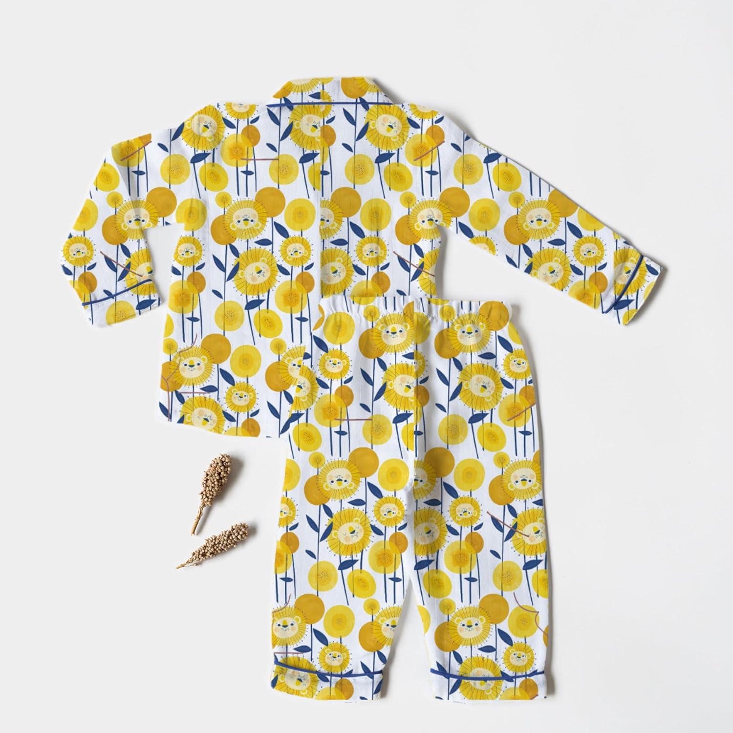 The Boo Boo Club Stylish Lion Print Muslin Night Suit | Soft, Breathable Fabric for Sensitive Skin | Flexible Relaxed Fit Pyjama Sets for All Seasons | for Boys and Girls