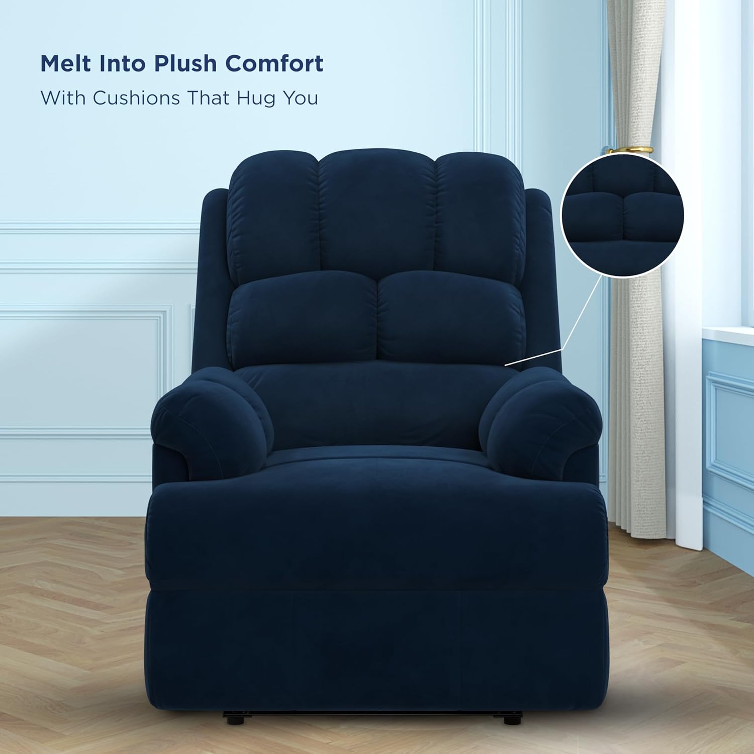 COMFORTABLE SNUG FIT Premium design that hugs your body. Each of the cushions ensure your body gets a snug fit from the recliner, giving you a cozy experience.