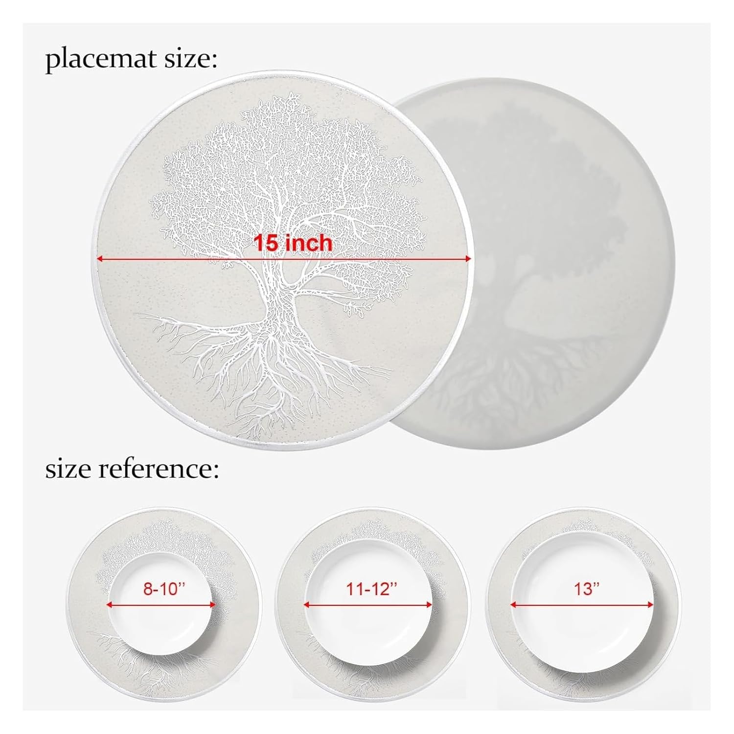 Diameter: 38cm/ 15inch.Large enough for most plates and bowls.The round placemat is wrinkle resistant, no crease and folding line during use.
