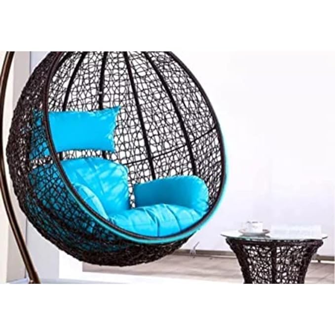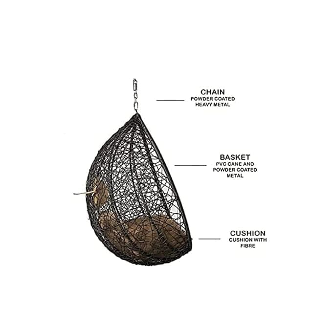 Tiranga Furniture Wicker Teardrop Hanging Chair ? Black (Stand Not Included) Experience comfort and style with this handcrafted indoor/outdoor hanging chair. Made from durable PVC cane and powder-coated metal, it features a heavy-duty chain for stability. The fiber-filled cushion ensures plush seating, while the intricate weave design adds elegance. Ideal for balconies, patios, or living spaces, it?s easy to install with a recommended 20-inch ground clearance. The removable, washable cushion cover ensures easy maintenance. Perfect for lounging in any setting!