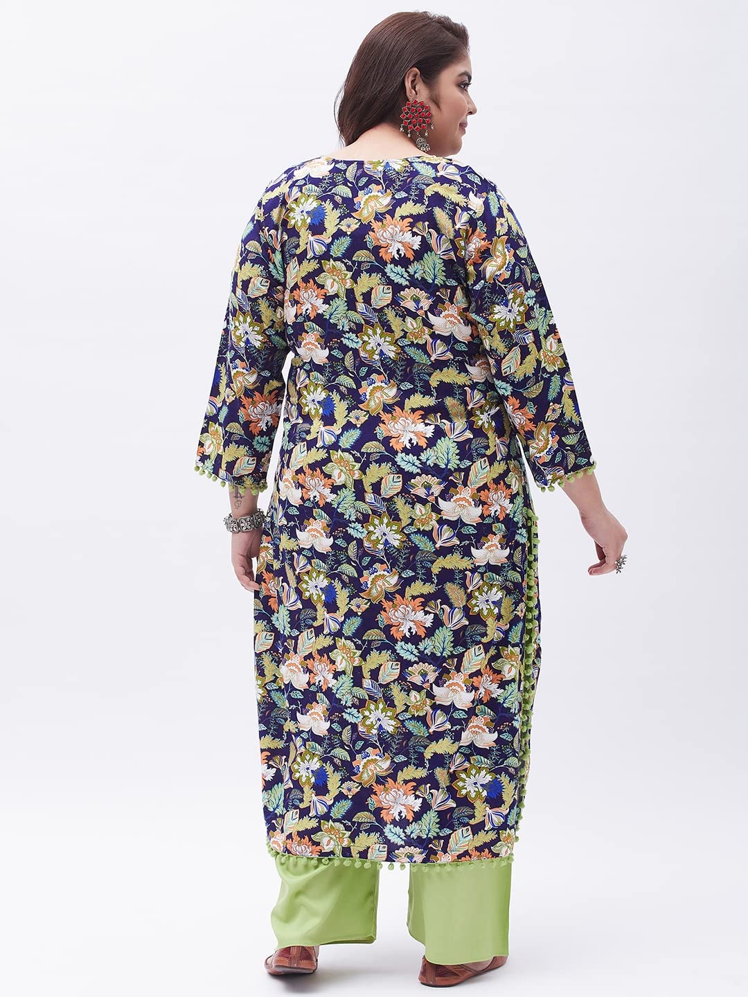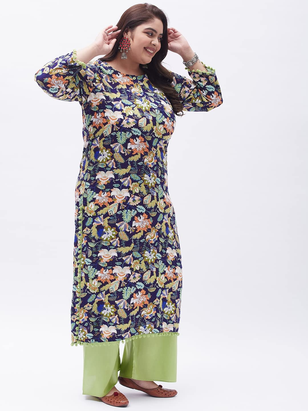 Women’s Plus Size Blue & Green Printed Kurta with Palazzo