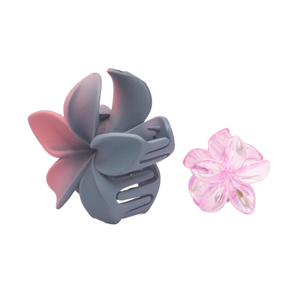 Tiulee Gray and Pink Shade Flower Shaped Hair Claw Clip and Tropical Pink Flower Hair Clip (Pack of 2)
