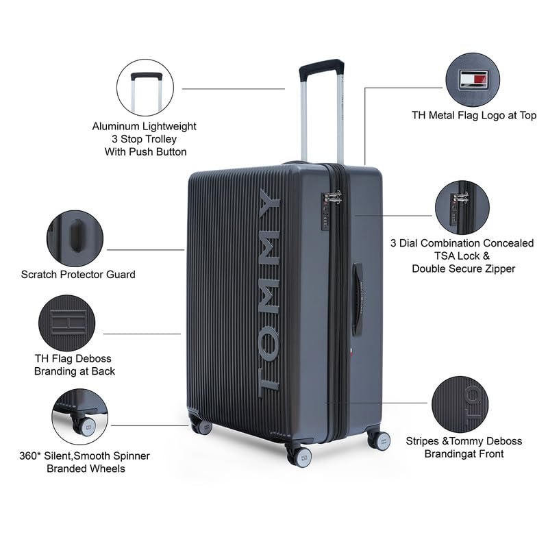 Tommy Hilfiger Empire Plus Trolley, Grey, 95L | Big Suitcase for Travel, Check-in Luggage
