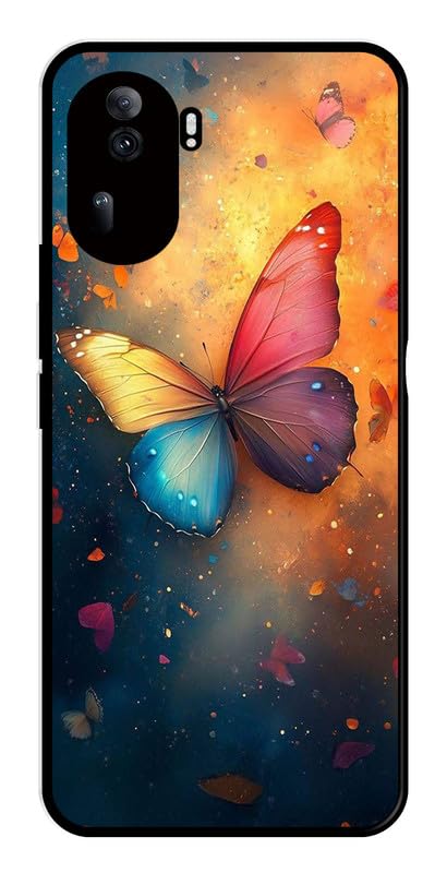 TUKON | Compatible for Oppo Reno 11 Pro 5G Mobile Phone Back Cover 2D Metal | for Boys Girls | Butterfly Printed Rubber Silicone Soft TPU Sides with Camera Protection