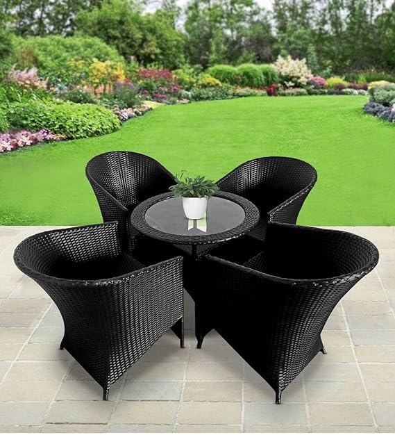 UNIFORT D-15 Chairs Table Set 4+1 Wicker Patio Furniture Sets 4 Chair and 1 Table for Garden Balcony Bedroom(Black)