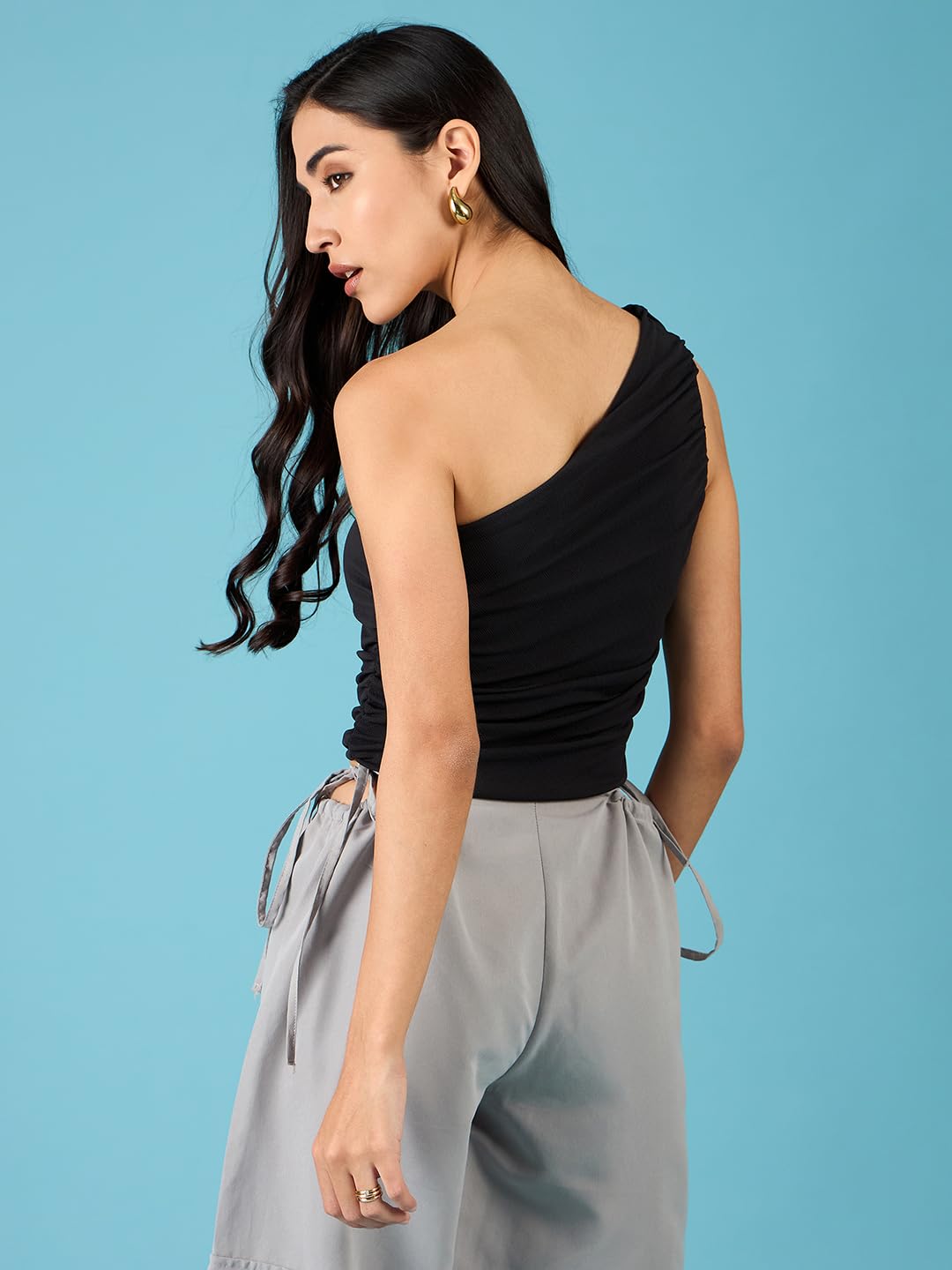 The One Shoulder Top with Gathered Sides can work with jeans or high waist pants, palazzos or skirts and it is perfect for a night out or day time and an easy to wear wardrobe staple. The top is super comfortable and of the perfect cropped length according to the average Indian woman’s height and can be worn for any occasion. The premium fabric is wrinkle-free and colour bleeding resistant and machine washable thereby making it long lasting and easy to maintain.