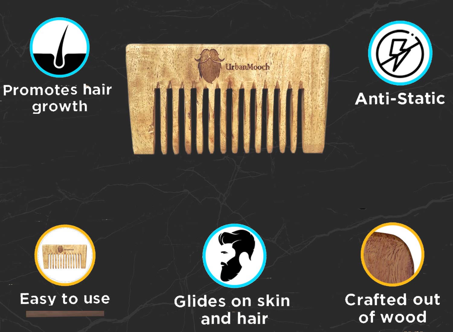 BEARD COMB: UrbanMooch wooden comb is made of Neem Wood and quality finishing for long lasting. It is a good helper when you apply beard care oil or beard care balm. It also allows you to style your beard and mustache easier.