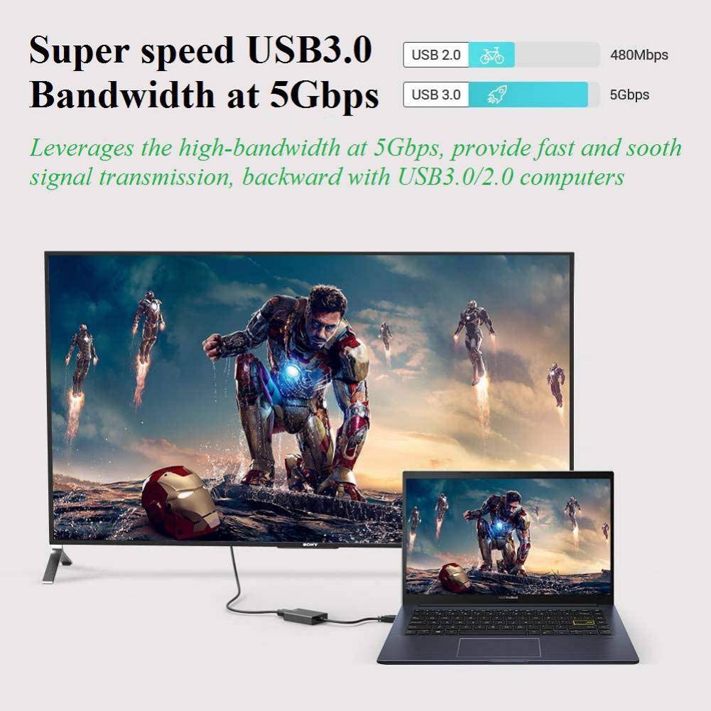 【1080P High Resolution】 Leveraging the high-bandwidth (5Gbps) Super Speed USB 3.0 interface offering flawless high definition video transmission to your monitor or projector, video resolution up to 1080P and support 3D display, support display at 1920x1080P@60Hz on the screen when connected to either USB 3.0.