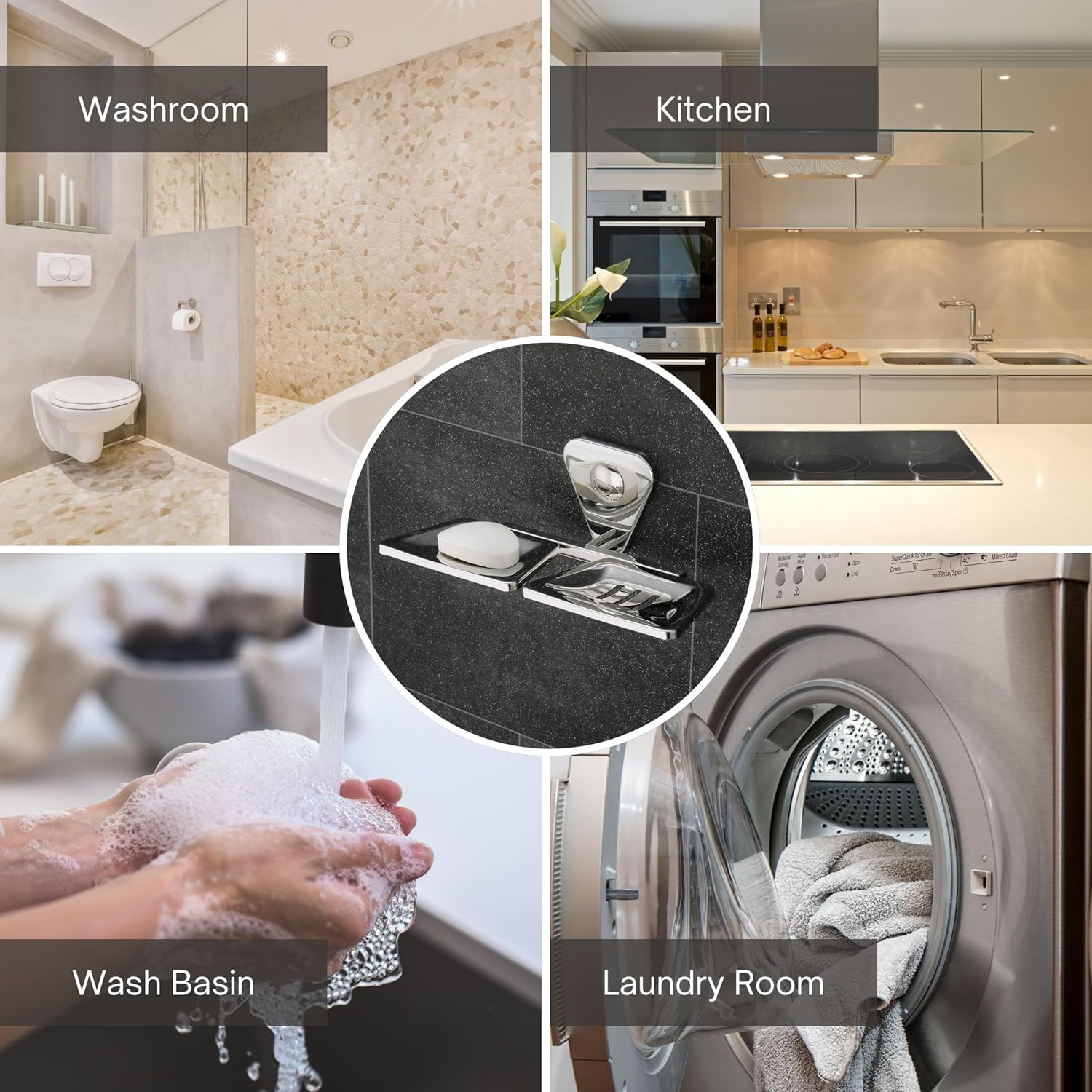 Design: The Soap Holder is Stylish and Has a Double Capacity to Hold Soaps with Size Specifications (L) 28 X (B) 9 X (H) 9 cm. The Design of This Double Soap Holder is as per the Latest Trends and Has to be Mounted Against Your Bathroom Wall.