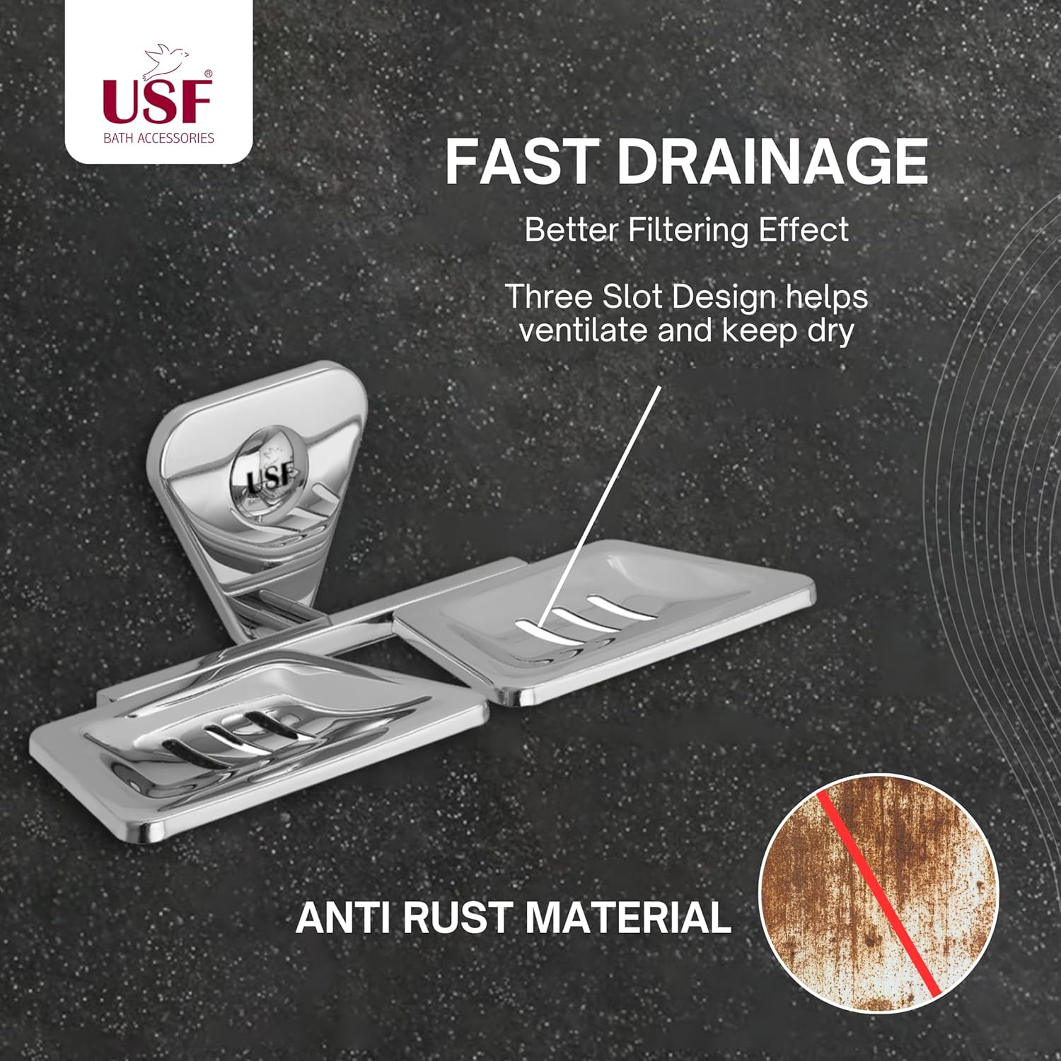 Durability: The U-S-F Double Soap Holder is Manufactured with the Latest Technology Which Makes it Anti-Rust and Corrosion-Free. It is Also Resistant to Hard Water and is Perfectly Durable for Long-Term use. So, you can just fit the Soap Holder and use it for a Lifetime.