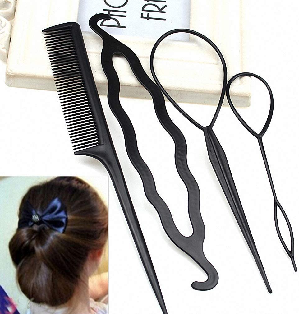 Bringing you a new hair style in seconds. Easily bends without having it cut or broken. Easy to get a princess or cute Bobby hair styling. One set include hair comb, bun maker and topsy tail, which are very complete. Suitable for all hair types,long hair or short hair,straight hair or curl hair, Perfect for party,dating,events and daily life. Create simple and elegant hair style, not only embellishes the shape of head and face, but also achieves graceful and sweet temperament. Package include: 1 x Hair Comb. 1 x Bun twist braid. 1 x Large topsy tail. 1 x Small topsy tail.