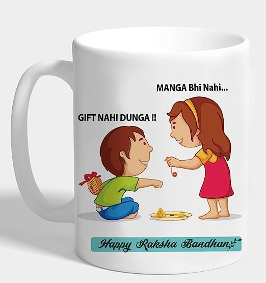 Vaishali PrintCraft Printed Ceramic Coffee Mug for Raksha Bandhan, Bhai Dooj Gift, Sister Brother Special (Gift nhi dunga Manga v nhi)