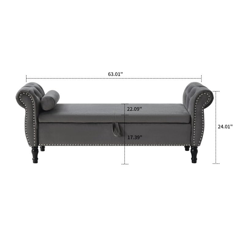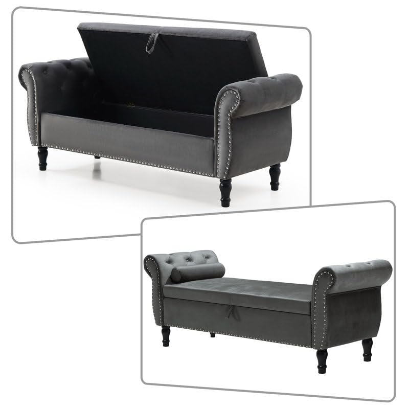 FOREMOST SOFA,This bench features rolled up arms on both sides, button tufting, and nailhead trim to enhance the style and texture of the bench and enhance your home’s decor. The bench is also designed with a storage space, which can store your pillows, blankets and other items, saving space. It can be placed not only in the bedroom, but also in the living room or entrance.