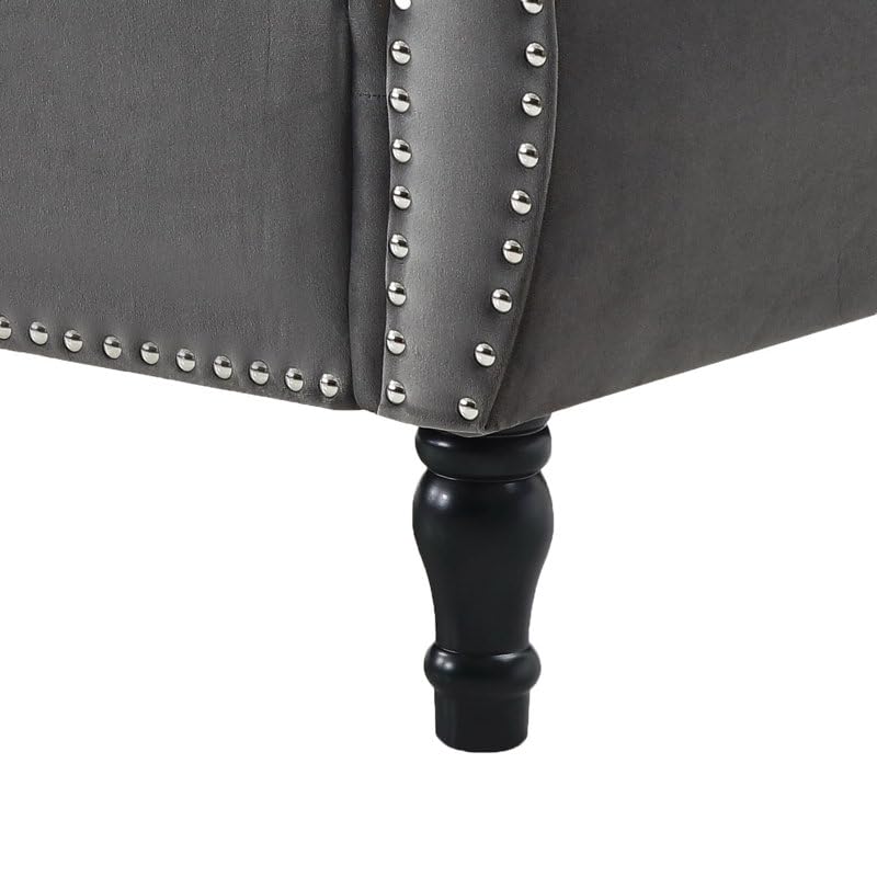 Velvet Upholstered Storage Bench Sofa Bench Sofa couches Ottoman Bench 2seater Sofa Chaise Lounger Puffy for Living Room Bedroom Office (Grey)