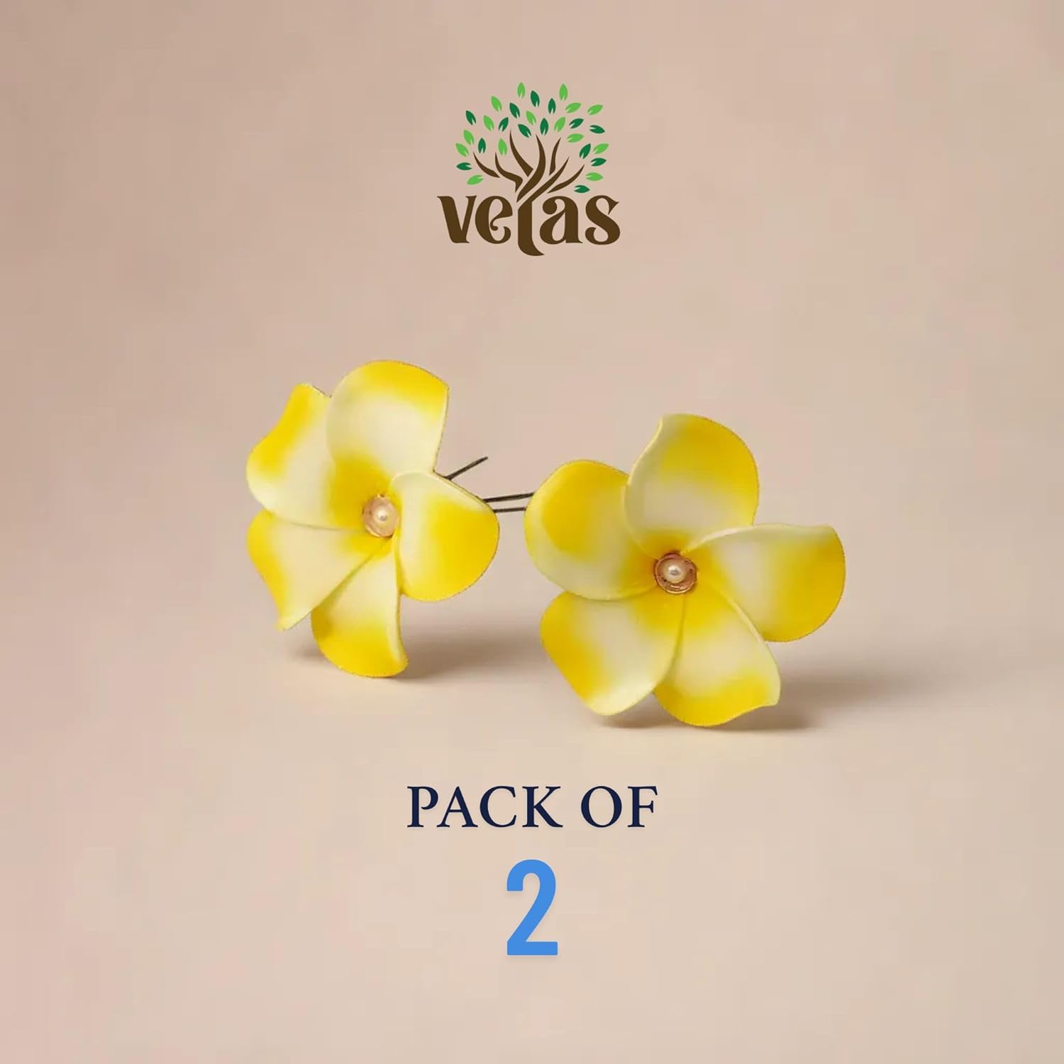VETAS Artificial Plumeria Flower Hair Clips for Women | Hawaiian Frangipani Hairpins for Bridal, Wedding, Party, Beach Hairstyles | Tropical Hair Accessories (Pack of 2)