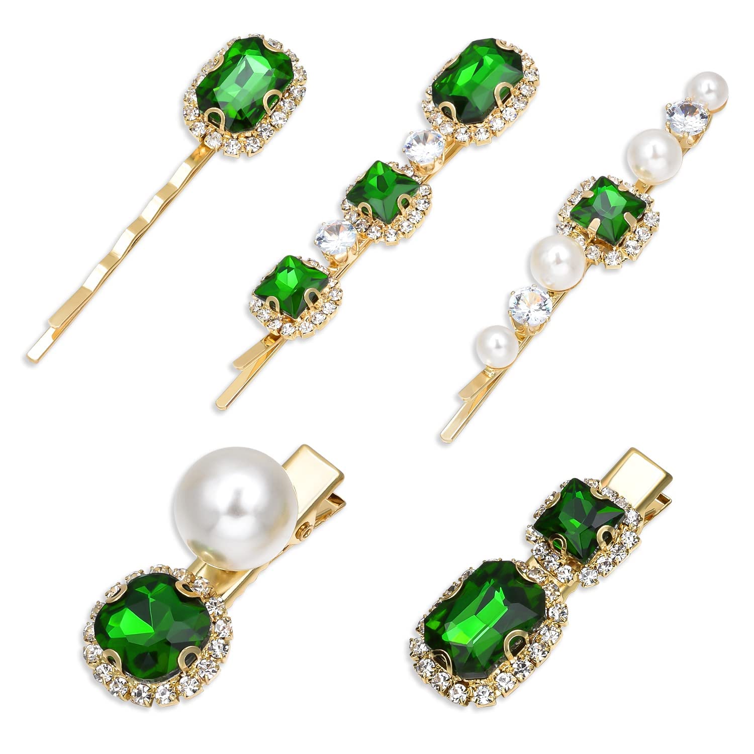 Vintage Hair Clips, Rhinestones Decorative Hair Pins, Handmade Light Green Crystal Pearl Hair Barrettes, Hair Accessories Headwear Styling Tools,