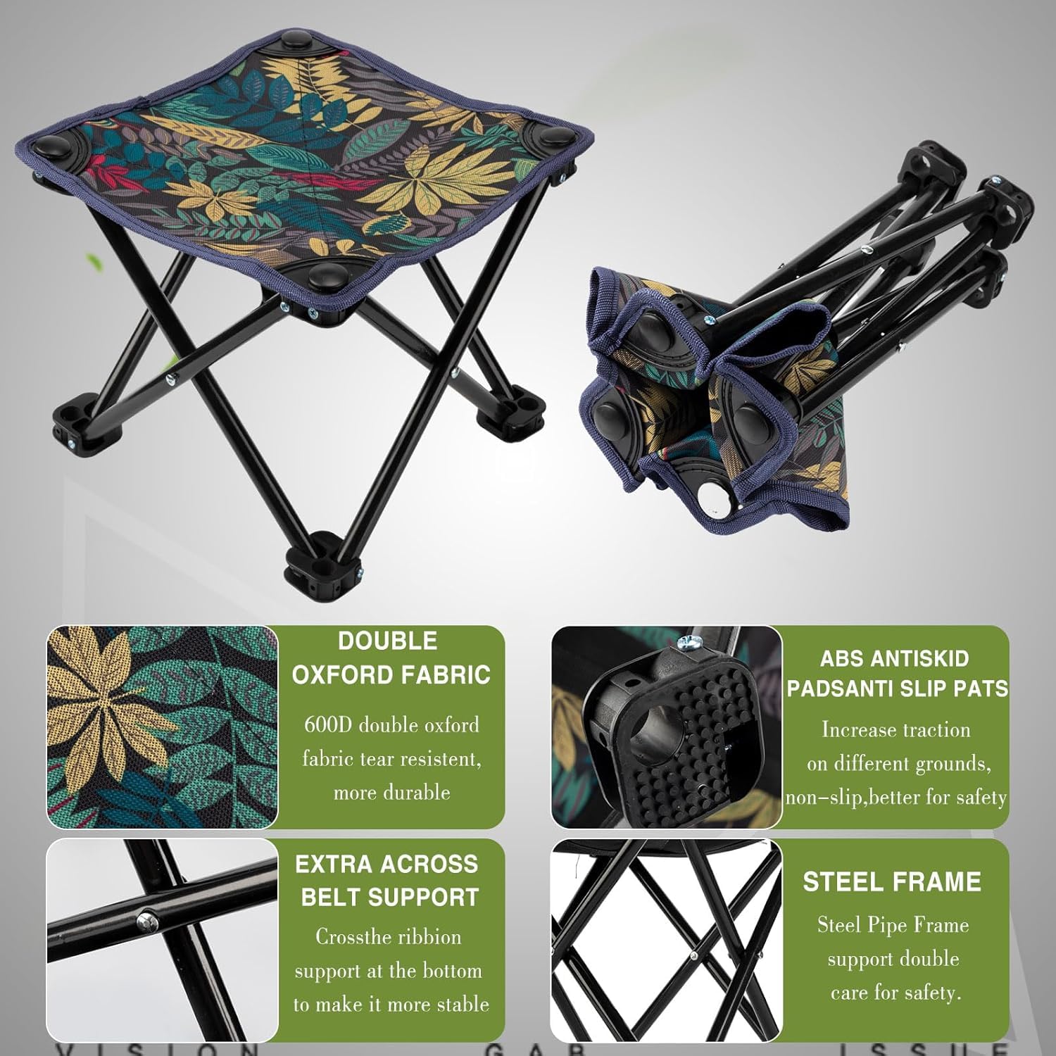 Easy to use: this is a foldable camping stool that only needs to be opened and then expanded, no assembly required; it can be folded back in just 3 seconds. Mini folding stool for easy travel, quick to set up, suitable and useful in all areas and activities.