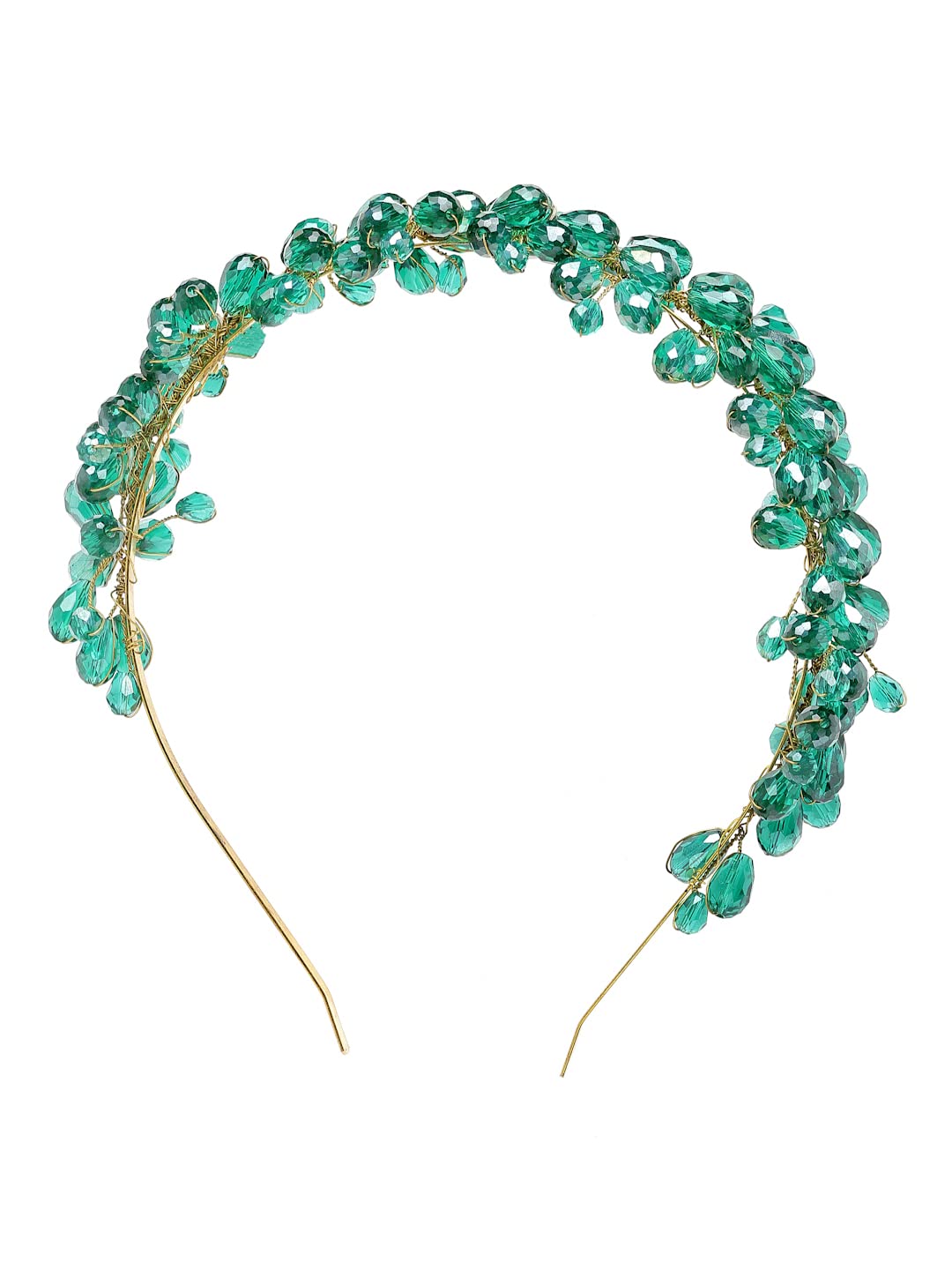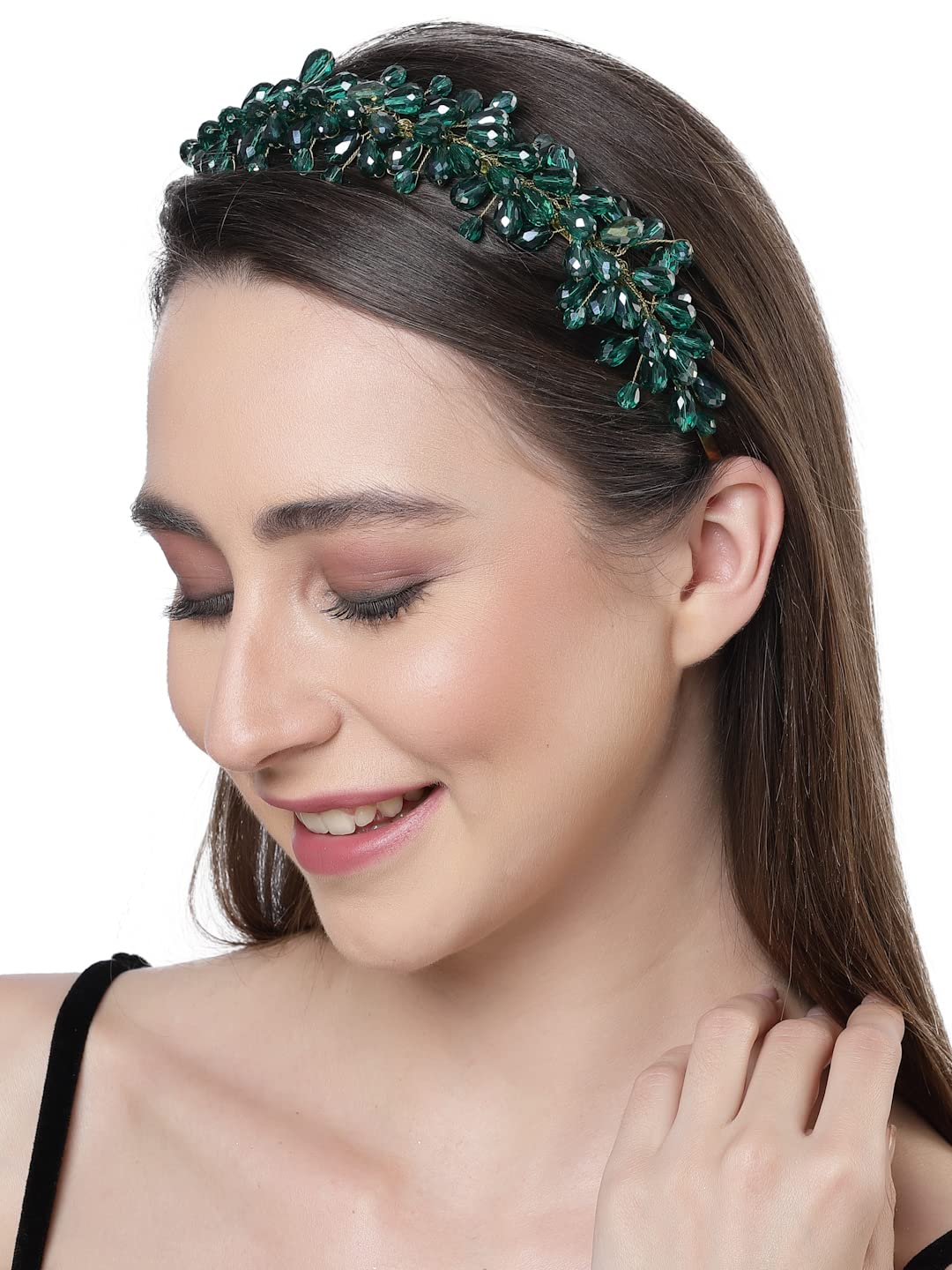 Vogue Hair Accessories Metal Green Handmade Crystal Beads Fancy Party Bridal Wedding Hairband Hair Accessories Headband For Women And Girls (Green_Full_Beads)