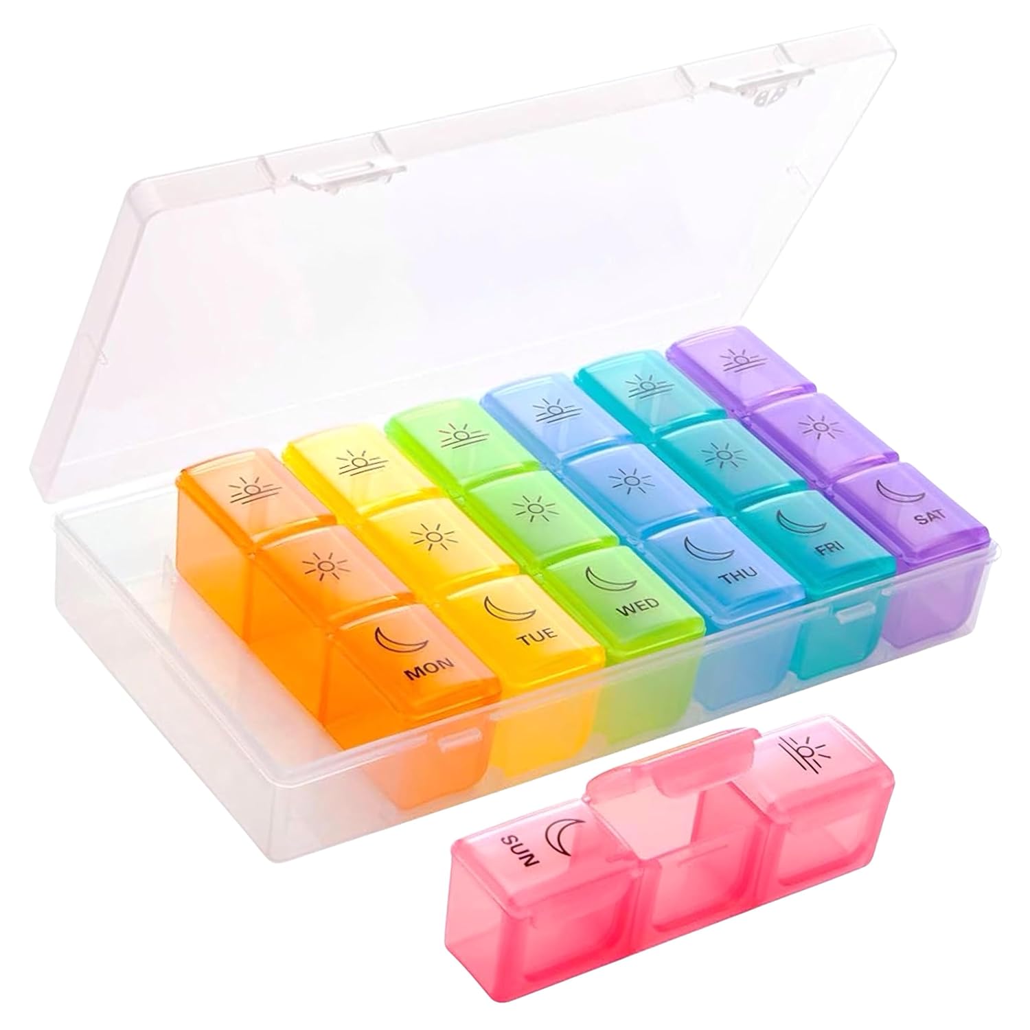 7 Day × 3 Times a Day Design – Convenient 21 slots (morning, noon, night) to manage your daily medicines, vitamins, and supplements without missing a dose.