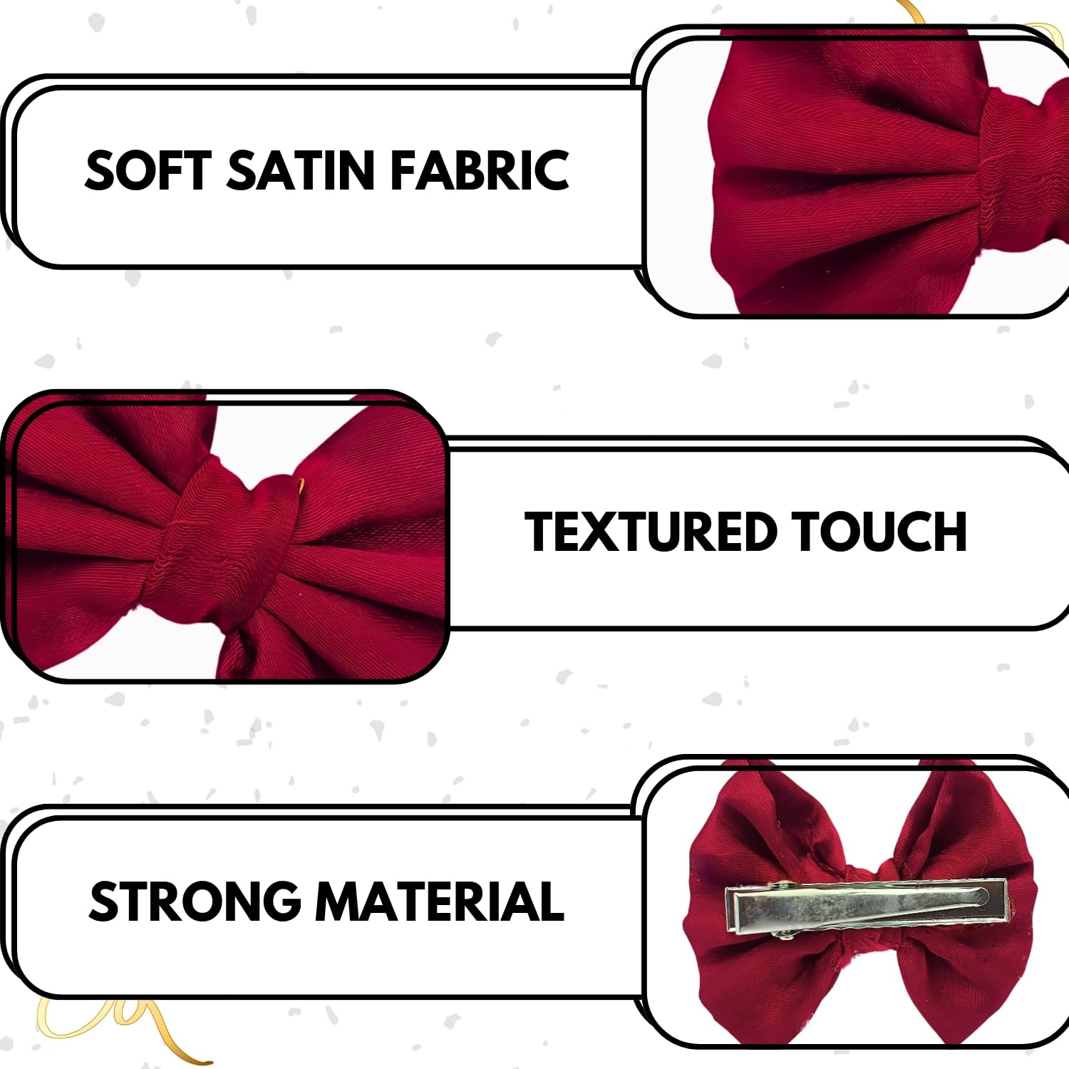 Strong & Non-Slip Grip for Secure Hold – Designed with a durable metal clasp and anti-slip grip, this bow hair clip stays firmly in place all day, preventing slipping, tugging, or hair pulling.