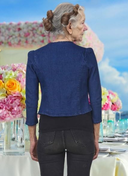 This stylish cropped denim jacket in Carolina Blue offers a sophisticated take on casual wear. The tailored silhouette features elegant three-quarter length sleeves and a classic button-front closure that adds versatility to your wardrobe. Crafted from quality denim fabric, this jacket provides both structure and comfort for everyday wear. The cropped length sits perfectly at the waist, making it an ideal layering piece over dresses, tops, or high-waisted bottoms. The timeless design includes traditional jean jacket details while maintaining a refined, modern aesthetic. Perfect for transitional weather, this versatile piece can be dressed up or down for various occasions. The fitted cut creates a flattering silhouette while allowing comfortable movement. The deep navy colour offers a sophisticated alternative to traditional blue denim, making it easier to coordinate with both casual and semi-formal attire. Available in various sizes, this jacket makes an excellent addition to any capsule wardrobe.