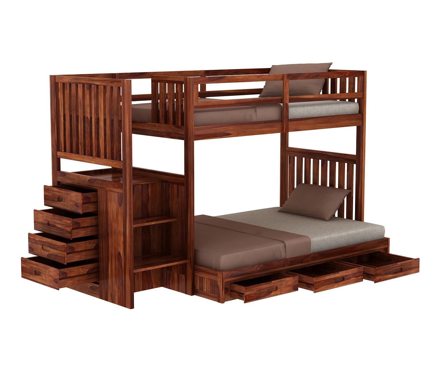 Wudniture Solid Sheesham Wood Bunk Bed for with Storage for Kids and Adults | Bunk Beds for Kids Bedroom (Honey)