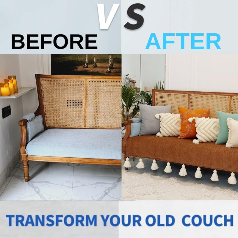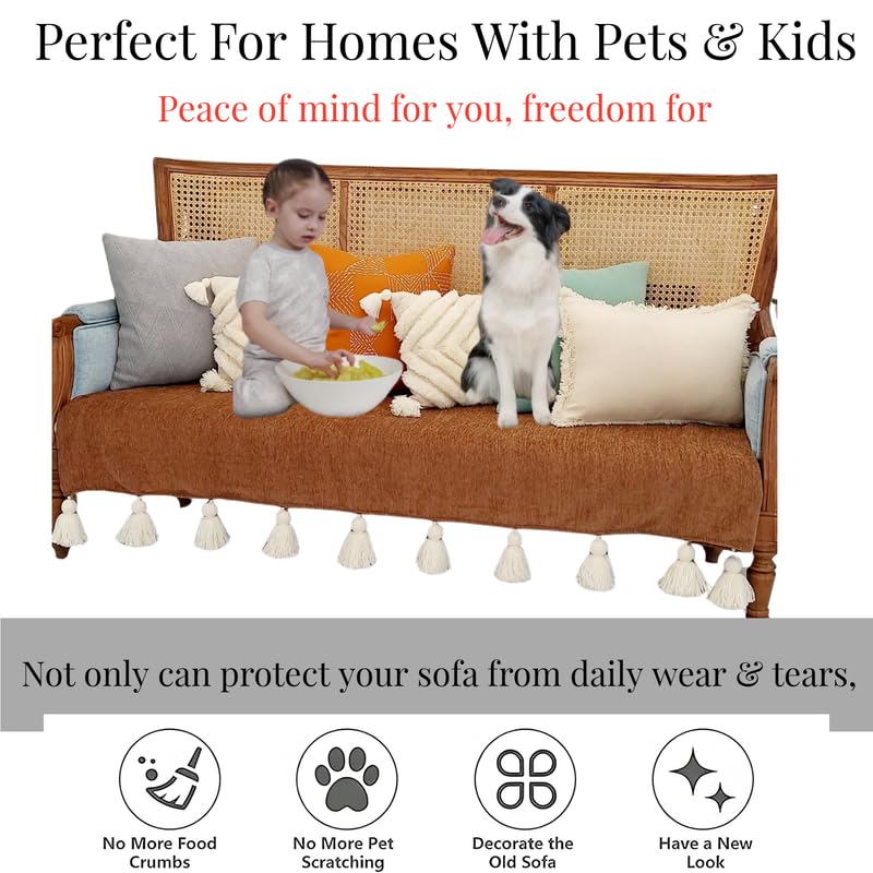 DESIGNER PREMIUM FURNISHINGS: Elevate your living space with the Designer Tassel Sofa Cover – Functional Protection with a Stylish Twist! Designed to protect your new sofa and revamp your old one.