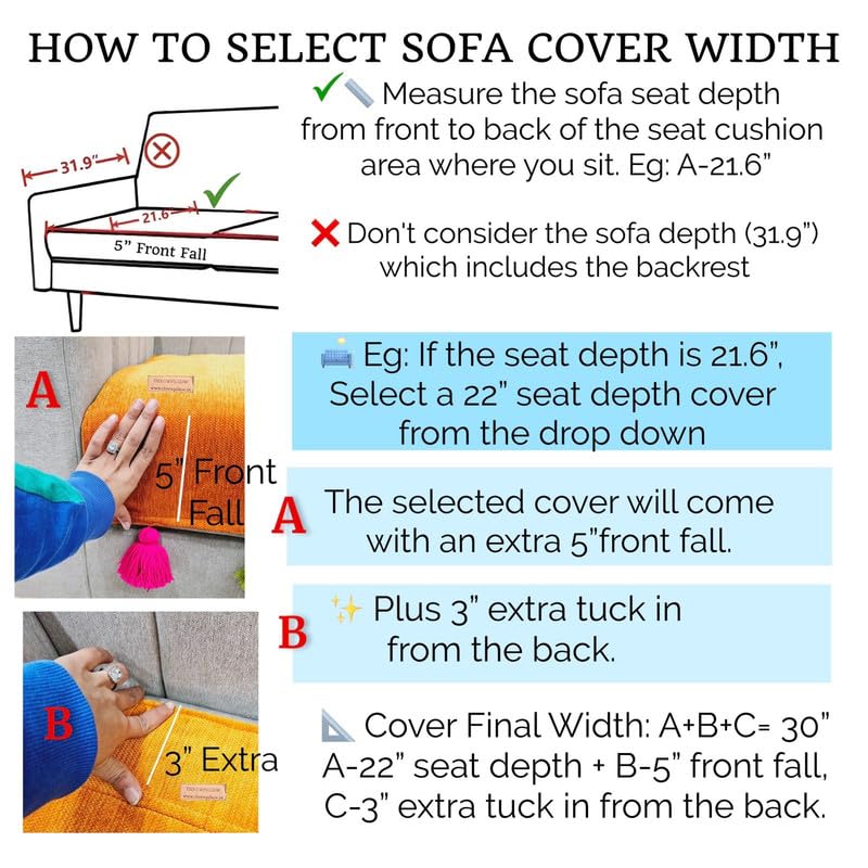 EASY CARE: Our sofa covers are easy to maintain and shrink resistant – just pop them in your washing machine on the ‘gentle’ or ‘delicate’ cycle and hang them to sun-dry – No expensive dry cleaning required. Enjoy stress-free cleaning and upkeep with a shrink-resistant cover