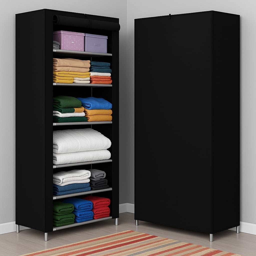 ★Organiser for wardrobe is beautifully designed and innovatively crafted modern design. With Movable clothes hanging rod and 6 storage shelves offers you enough space both for your longer outfits and folded clothes