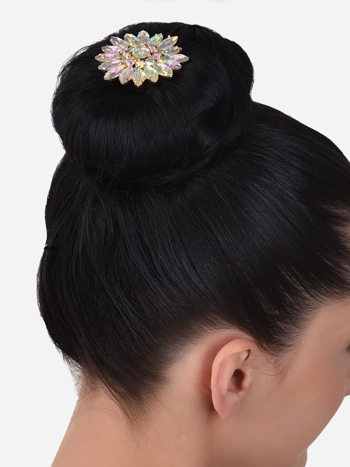 Zaveri Pearls Multicolor Dazzling Stones Bridal Flower Shape Bun Pin For Women-ZPFK12905