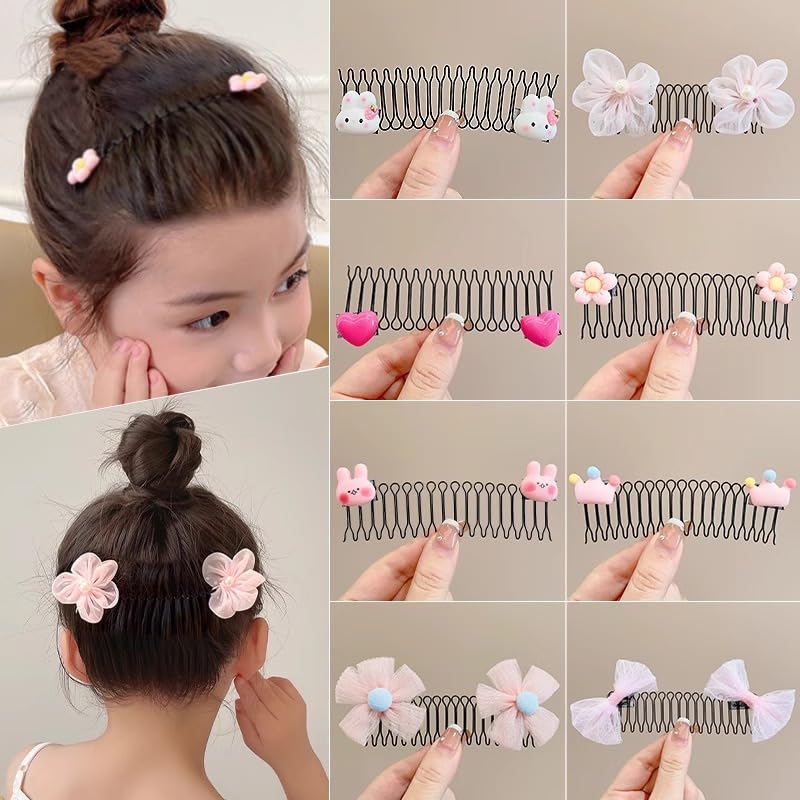 ZAVVU & KRIZOUS Stretchable Invisible Hair Clips Creaseless Hair Clip,Zig Zag Headbands Girls U Shaped Finishing Fixer Comb Headbands Cute Cartoon Invisible Hair Holder for Women & Girls Pack of 3.