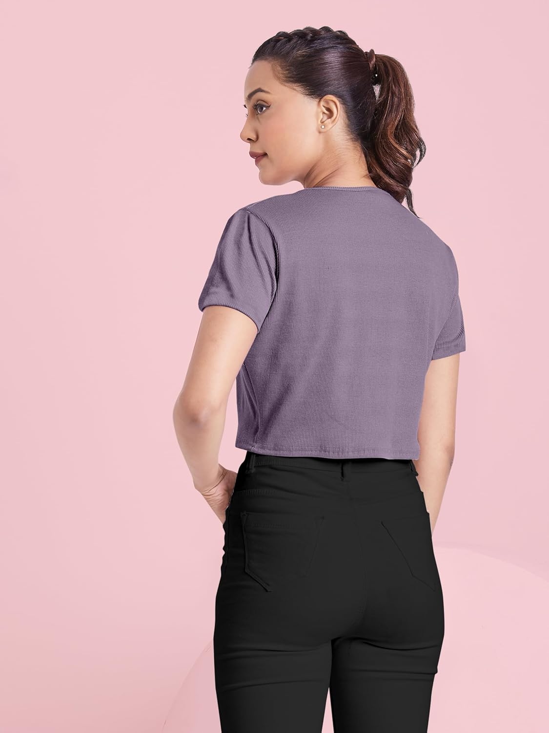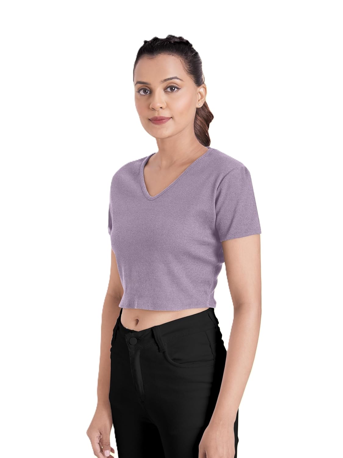 Zilcon Womens Crop Tops Summer Winter Baisc Tees V Neck T Shirts Casual Short Sleeve Cropped Tops